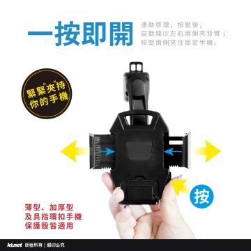 • ★按壓兩側 自動開啟左右兩側夾臂 穩固不脫落