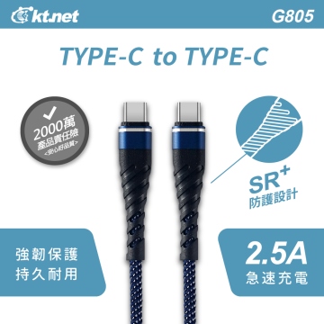 G805 TYPEC-C 強化插拔旋風線1M 藍2.5A