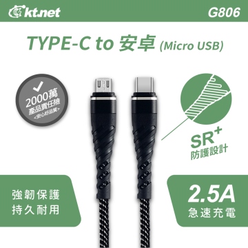 G806 TYPEC-安卓強化插拔旋風線1M 黑2.5A